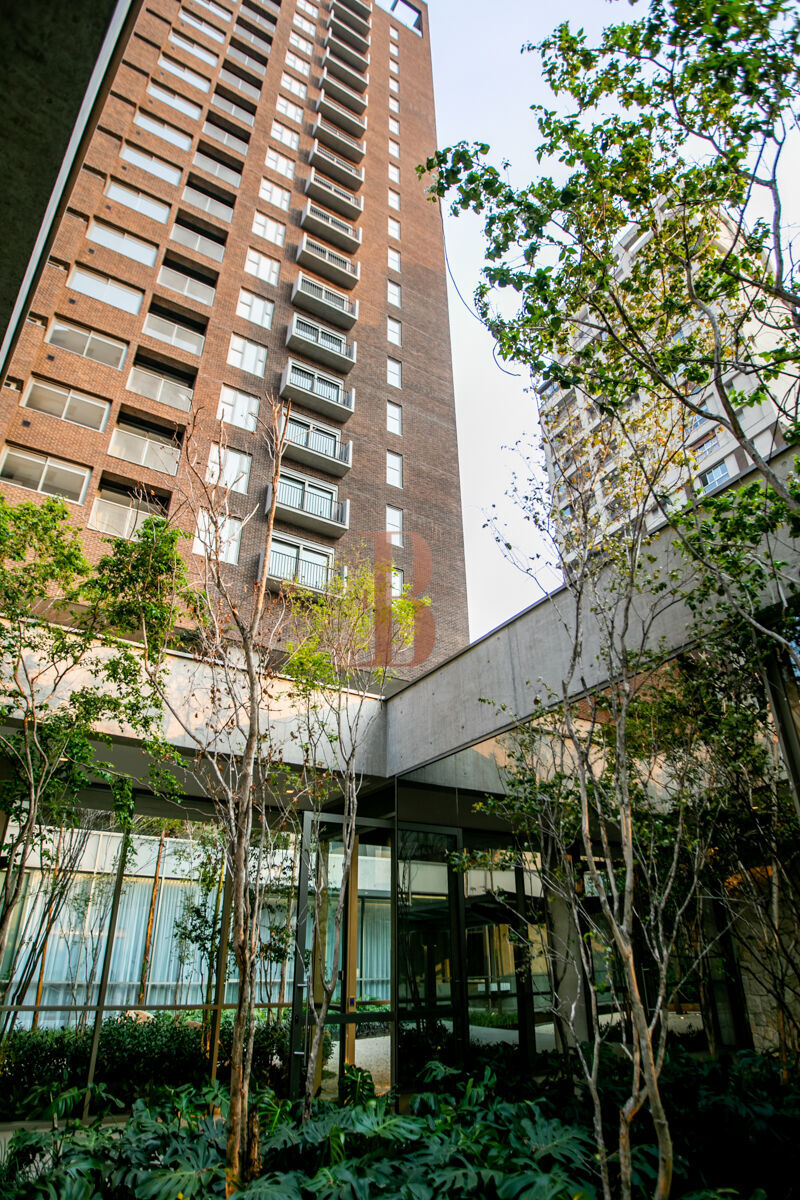 O edifício erguido por enormes pilares de concreto 19 metros acima do solo, sobre um exuberante jardim tropical. O paisagismo do empreendimento ocupa uma área de 1500 m² – o que equivale a 40% do terreno –, com vegetação que reflete o bioclima da Mata Atlântica, incluindo árvores nativas; isso tudo em meio à região mais cosmopolita da cidade.
